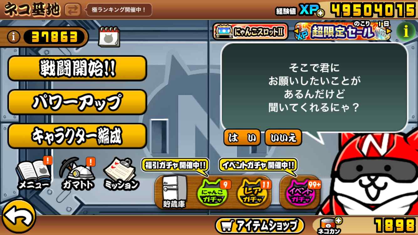 にゃんこ大戦争は、ケリ姫コラボが始まって、ステージ選択が賑やかです。