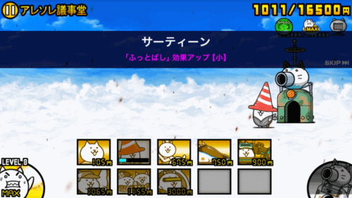 ※「にゃんコーン」がとてもタフなので、序盤にお金を貯めるときは「にゃんコーン」任せで大丈夫でした。