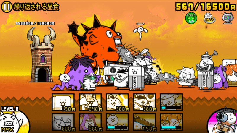 忘却共和国 【にゃんこ大戦争】忘却共和国「繰り返される昼食」へ挑戦、ほぼ最初からニャンピューターで放置攻略 にゃんこ大戦争攻略。忘却共和国「繰り返される昼食」へ挑戦、ほぼ最初からニャンピューターで放置攻略。「テッポー」と「教授」のコンビがとても強力です。ゾンビの「シノシシ」も1体だけ登場。この「シノシシ」をうまく倒せないと押し負けてしまいます。「シノシシ」対策が特に重要なステージです。 2025.10.10 忘却共和国