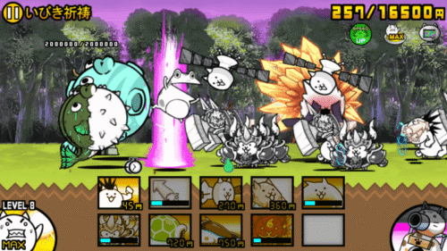 時間は掛かりますが、ニャンピューター任せの放置で敵が少しずつ減っていきます。「マキシマムファイター」と「ネコサテライト」が便利ですね。