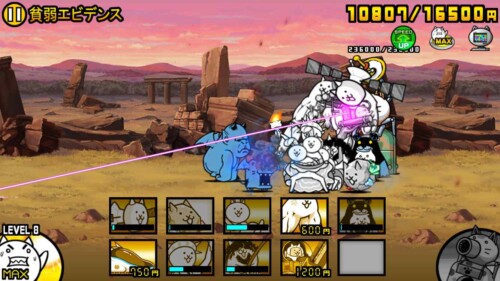 出しすぎず敵の侵攻を抑える程度でキャラを生産してお金を貯めますが、すぐに貯まります。