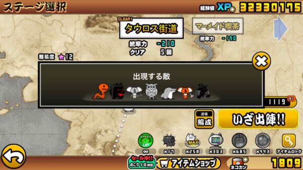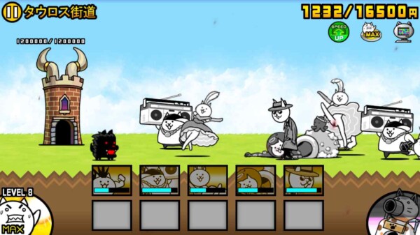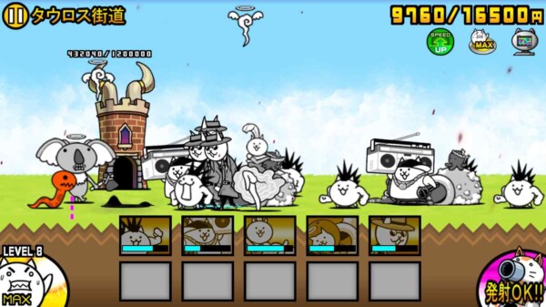 また、敵の数がそこまで多いステージではないので、覚醒のネコムートのような移動速度の速いキャラを使えば、さらにスピードクリアも狙えそうです。