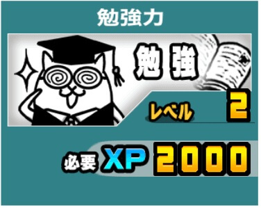 | 勉強力 | ステージクリア時に貰える経験値が増える。序盤は少しだけ上げておけばいい。経験値効率が良くなるけど、これの強化は後でも良い。 | ![]() | C |