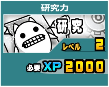 | 研究力 | キャラの生産スピードが上がる。 特に壁キャラを素早く沢山生産しやすくなるので戦いやすくなる。 にゃんコンボの研究力アップと組むと面白い。 | ![]() | A |