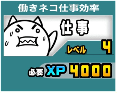 | 働きネコ仕事効率 | 働きネコの効率を上げてお金の増加スピードが速くなる。 | ![]() | A |