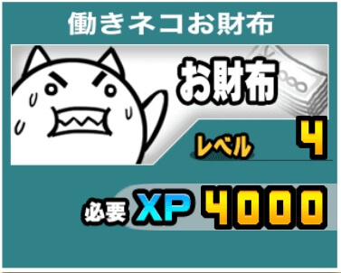 | 働きネコお財布 | 働きネコのお財布を大きくすると、戦闘中に所持できるお金の上限が増えます。 お財布の容量より高いコストのキャラは生産できないため、強いキャラを出すにはお財布の強化が必須です。 | ![]() | A |