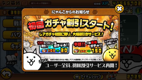 ● 初回ガチャ割引
