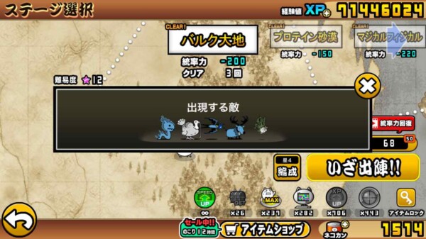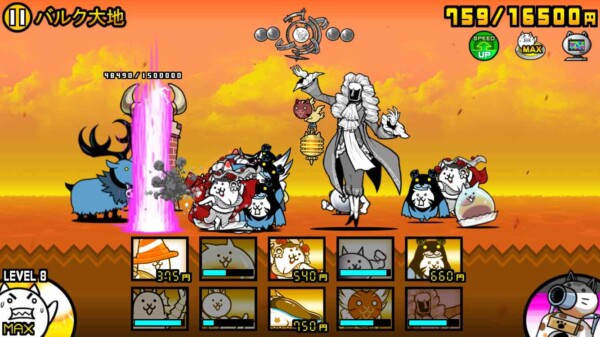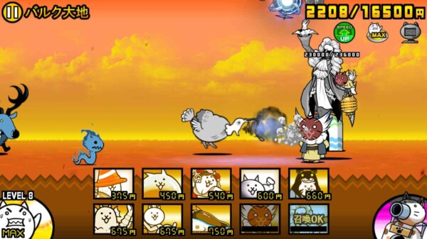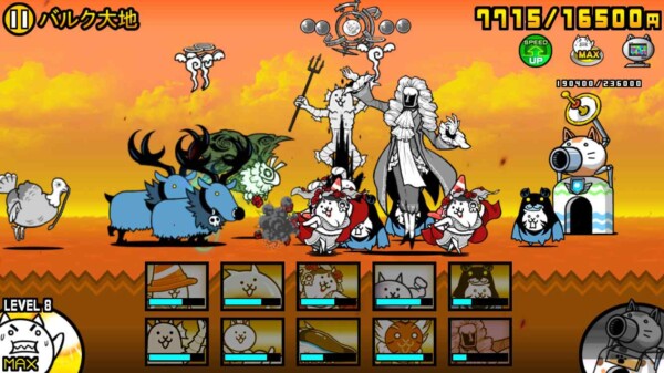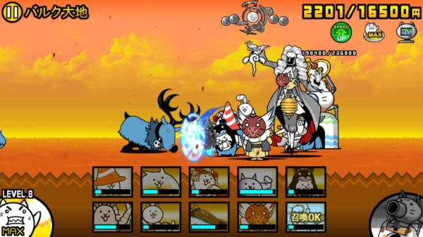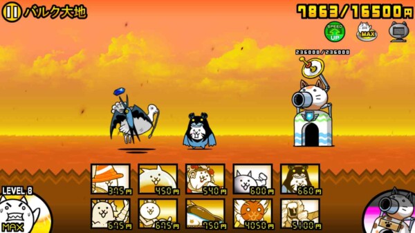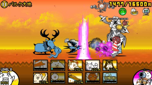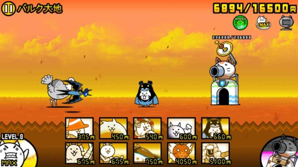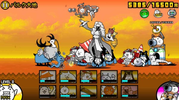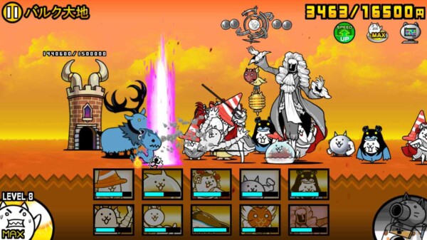 にゃんこ大戦争の「マッスルエンパイア」第一ステージ「バルク大地」を、ニャンピュータを使った“ほぼ放置プレイ”でクリアできました。