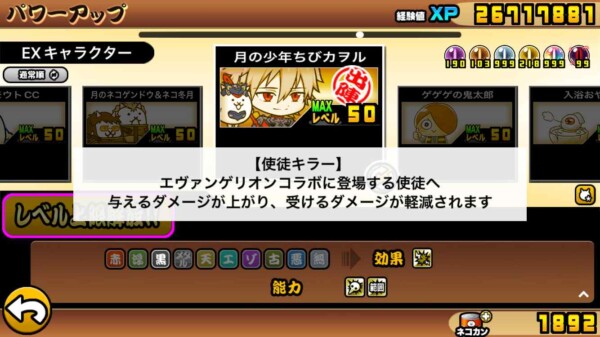 「使徒キラー」は、エヴァキャラの能力説明欄に書かれています。編成する前に、キャラ詳細をチェックしてみましょう。