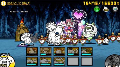 『にゃんこ大戦争』の攻略情報をお届けします。今回は、ほの暗い沼の底から「河の流れのように超極ムズ」の攻略です。