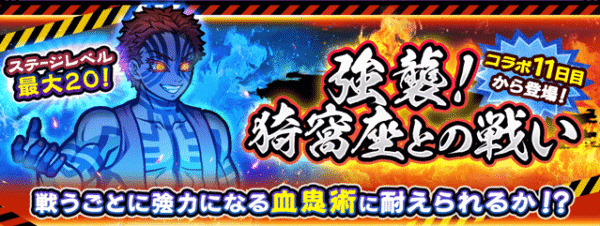 上弦の鬼・猗窩座が襲来!挑戦するたびに強くなる強襲ステージです。20ステージあります。