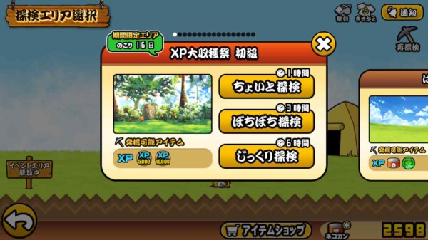 イベント期間中、「ガマトト探検隊」にXP大収穫祭(初級)が出現!