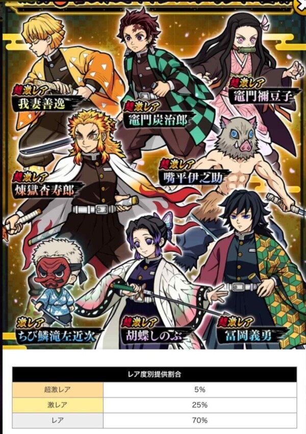 ※コラボキャラは「鬼滅の刃」ガチャからのみ排出されます