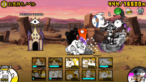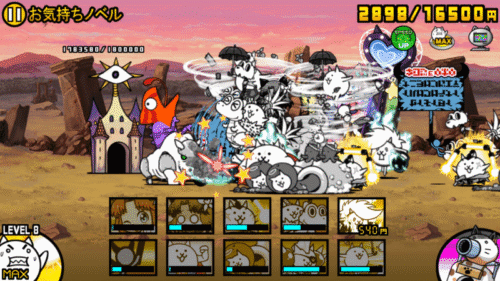 ステージ開始後、「ニャンピューター」を切らないで敵城へ突撃します。