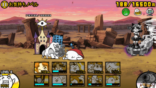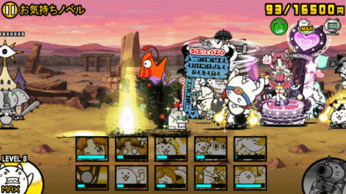 まずはメタルの敵を優先して減らしたいところですが、「ネコリベンジ」が高い頻度で「ジョン・レオン」を吹っ飛ばしてくれるため、自然とメタルの敵が前に出てきます。