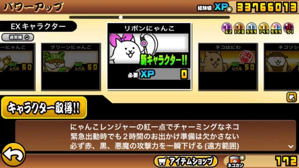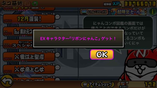 EXキャラクター「リボンにゃんこ」ゲット!