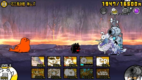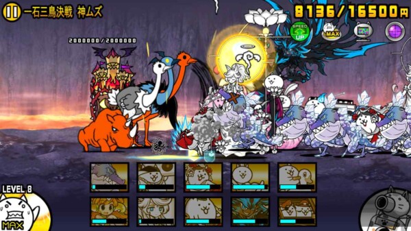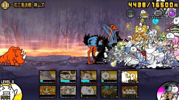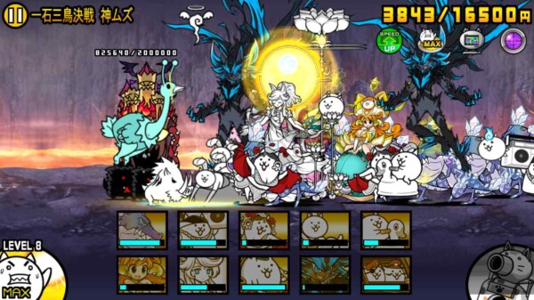 取り巻きを倒していっきにお金が増えるので、ダークフォノウとコンボーイズを生産。私の手動操作ではもうついていけないので、後はニャンピューターに任せます。